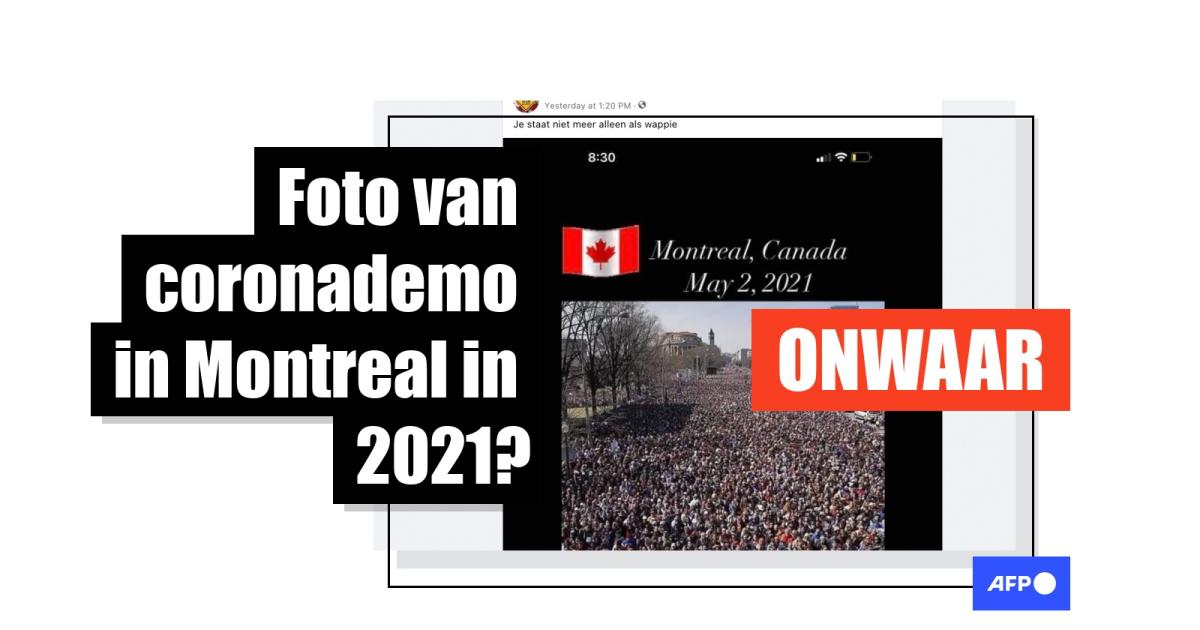Een dag voor de genoemde datum op de Facebookfoto, op 1 mei 2020, marcheerden demonstranten in Montreal tegen de coronamaatregelen. De politie weigerde om AFP Canada een schatting van het publiek te geven, maar Canadese media zeiden dat dit het grootste coronaprotest was in Quebec van de afgelopen maanden. De foto in de Facebookpost heeft echter niets met deze demonstratie te maken.
