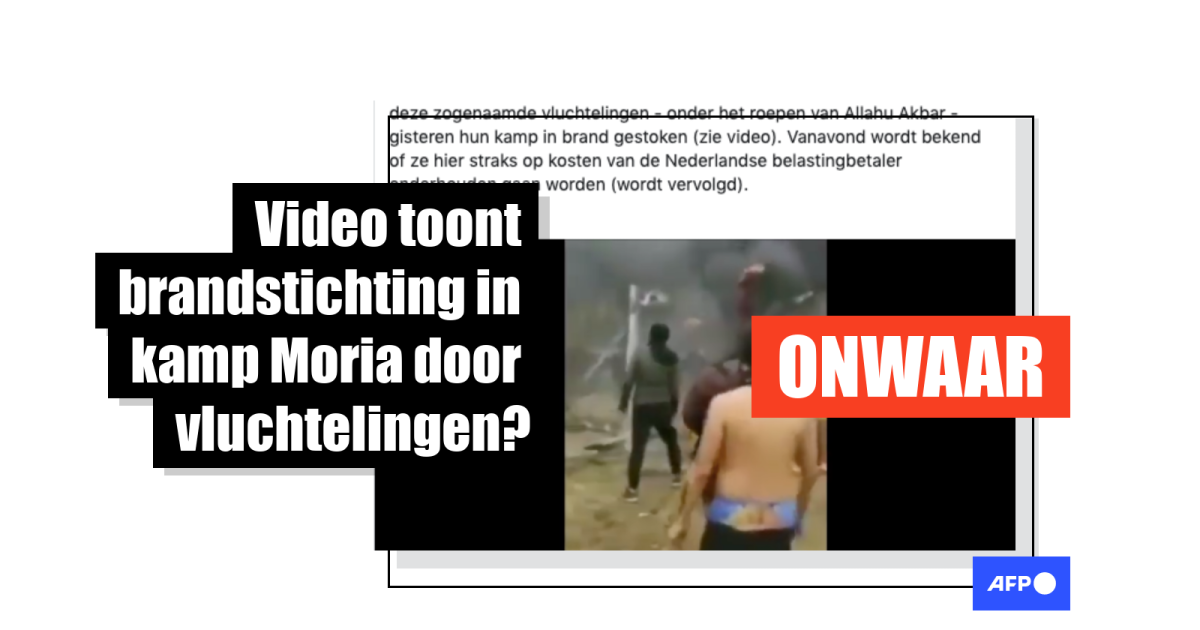 De video werd 10 september gepubliceerd in een Nederlandstalige Facebook-post en werd meer dan 650 keer gedeeld. “Zoals bekend hebben deze zogenaamde vluchtelingen - onder het roepen van Allahu Akbar - gisteren hun kamp in brand gestoken (zie video),” staat in het bijschrift onder de video. “Vanavond wordt bekend of ze hier straks op kosten van de Nederlandse belastingbetaler onderhouden gaan worden (wordt vervolgd).”