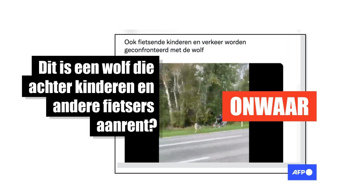 Deze video toont een hond die over de weg rent, geen wolf