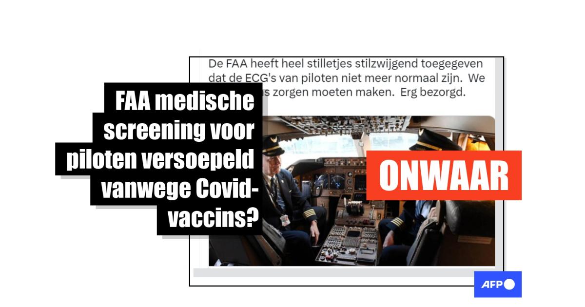 Zoals de FAA op 17 januari 2023 aan AFP uitlegde, "heeft de federale luchtvaartarts van de FAA kunnen vaststellen dat piloten en luchtverkeersleiders veilig kunnen worden gevaccineerd met vaccins van Pfizer, Moderna, Johnson & Johnson of Novavax. We hebben geen overtuigende gevallen waargenomen van vliegtuigongelukken of arbeidsongeschiktheid van piloten als gevolg van medische complicaties in verband met Covid-19-vaccins."