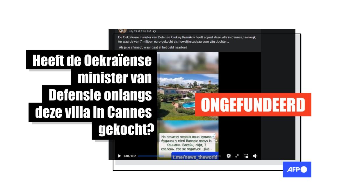 Honderden gebruikers van sociale media hebben sinds juli vergelijkbare berichten gedeeld in verschillende talen (Nederlands, Engels, Frans, Slowaaks, Tsjechisch, Pools en Bulgaars) waarin staat dat de Oekraïense minister van Defensie Oleksiy Reznikov onlangs een villa heeft gekocht in Cannes, Frankrijk, voor 7 miljoen euro, naast foto's van een villa met uitzicht op zee. In sommige berichten wordt ook beweerd dat dit een huwelijkscadeau was voor zijn dochter of dat ze het zelf heeft gekocht.