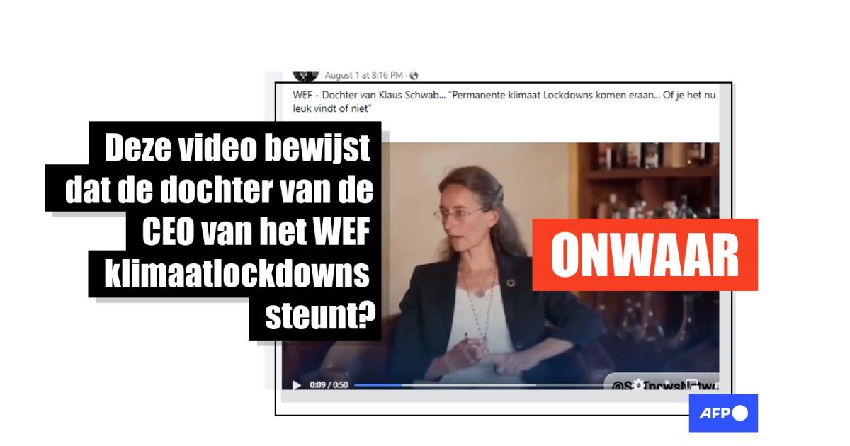 Woordvoerder Trevor Chueu van het World Economic Forum (WEF) zei aan AFP dat Nicole Schwab, de directeur van 1t.org en op de natuur gebaseerde oplossingen bij de organisatie, niet had gedreigd met "klimaatlockdowns". "We kunnen bevestigen dat dit nepnieuws is," zei Chueu in een e-mail van 10 augustus.