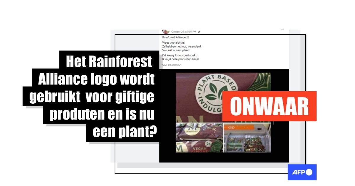 "Rainforest Alliance !!! Wees voorzichtig! Ze hebben het logo veranderd. Van kikker naar plant!" luidt een post van 26 oktober dat meer dan 30 keer is gedeeld op Facebook. Bij de post is een afbeelding gevoegd met verschillende foto's van Magnum-ijsjes en een logo van drie bladeren omringd door de woorden "Plant based" en "Indulgence".