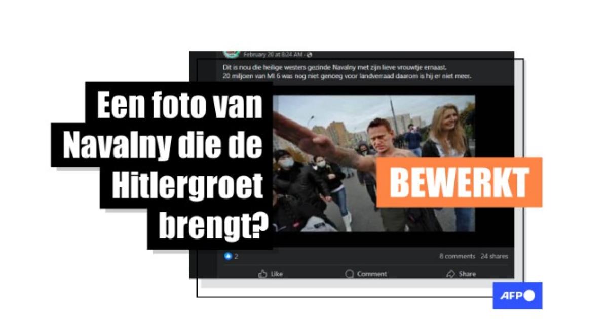 Veel gebruikers van sociale media toonden hun respect aan de overleden oppositieleider. Sommigen juichten zijn dood echter toe en beweerden dat hij een "neonazi" was in berichten die vergezeld gingen van een vermeende foto van Navalny. "Dit is nou die heilige westers gezinde Navalny met zijn lieve vrouwtje ernaast", beweerde een gebruiker in een Nederlandstalige Facebookpost van 20 februari. In een andere post, die meer dan honderd werd gedeeld, werd ook geschreven dat Navalny volgens de mainstream media en de Europese Unie "een held [is] terwijl hij Neonazi was & de Hitlergroet bracht! ". Soortgelijke berichten gingen viraal in het Frankrijk en Kroatië.