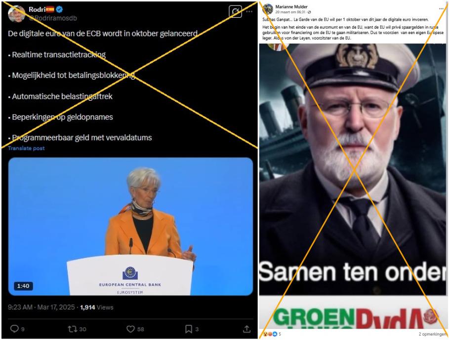 In andere berichten, zoals dit Facebookbericht gepubliceerd op 20 maart 2025, wordt ook beweerd dat de digitale euro zal worden geïntroduceerd in oktober en voegen eraan toe dat dit "het begin van het einde van de euromunt" zal betekenen, omdat de Europese Unie "privé spaargelden in ruste wil gebruiken voor financiering om de EU te gaan militariseren".