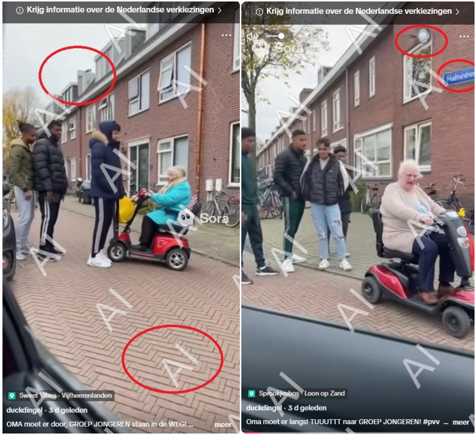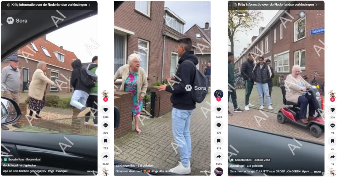 TikTok en andere socialemediaplatforms worden overspoeld met realistisch uitziende AI-video's gemaakt met Sora 2, het nieuwe tekst-naar-videomodel van OpenAI. In aanloop naar de Nederlandse verkiezingen op 29 oktober 2025 circuleren meerdere AI-video's waarin een oudere man of vrouw jongeren wegjaagt en daarbij roept: "Ik stem op de PVV". De filmpjes werden duizenden keren bekeken en gedeeld.