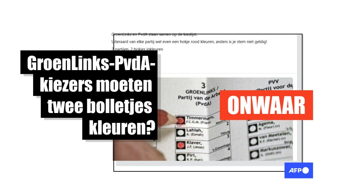 "LET OP: GroenLinks en PvdA staan samen op de kieslijst. Uiteraard van elke partij wel even een hokje rood kleuren, anders is je stem niet geldig! 2 partijen, 2 hokjes inkleuren" schrijft een socialemediagebruiker op 16 oktober 2025 op X. De post werd meer dan 700 keer gedeeld. Daarna legde X het beperkingen op omdat het in strijd zou zijn met het "Beleid inzake Burgerlijke Integriteit" van X.