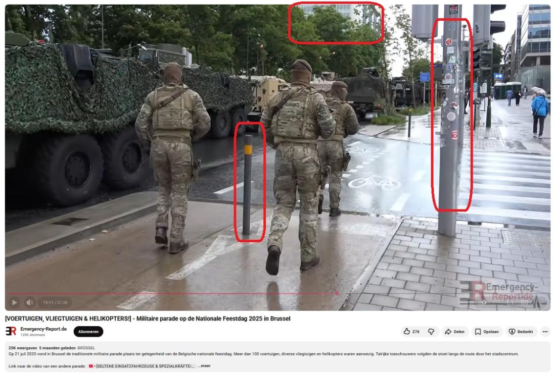 Een omgekeerde zoekopdracht met keyframes uit de virale video, toont aan dat sommige mensen al op X aangaven dat de video niet werd opgenomen tijdens de boerenprotesten in december 2025, maar tijdens de militaire parade op de Belgische nationale feestdag op 21 juli 2025.