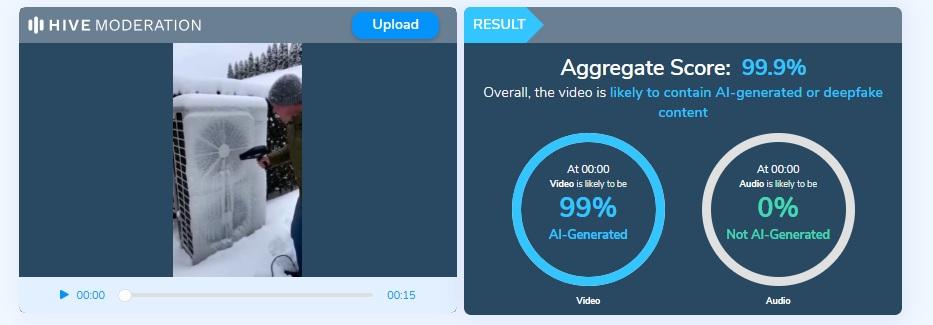 Maar de video werd gegenereerd door AI. Experts vertelden AFP dat luchtgedreven warmtepompen, zoals die in de AI-video, makkelijk een paar graden onder 0 aankunnen.