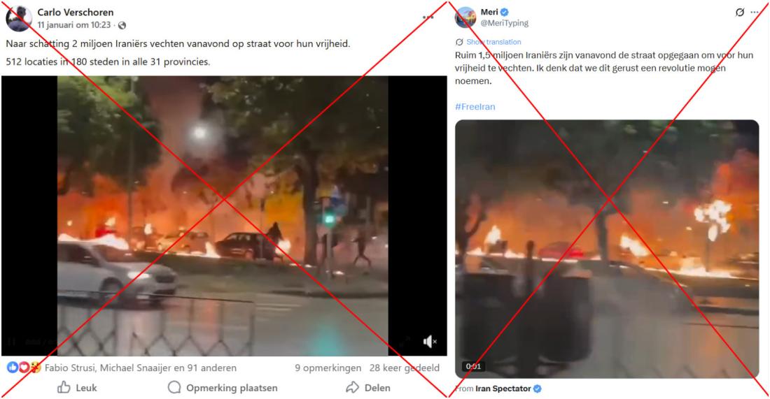 In januari 2026 werd Iran overspoeld door een enorme golf van protesten, die leidde tot een gewelddadig optreden van de Iraanse autoriteiten. Beelden van de protesten bereikten de buitenwereld slechts mondjesmaat vanwege de strenge controle die de Iraanse regering uitoefent op de internettoegang in het land. Te midden van deze black-out begon een video te circuleren op het internet die zogenaamd beelden van de protesten toonde. De video was echter opgenomen in Griekenland eind 2025, waar rellen uitbraken na een concert.