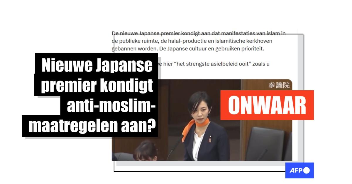 De populaire conservatieve premier van Japan, Sanae Takaichi, werd herkozen na een verpletterende overwinning tijdens vervroegde verkiezingen in februari 2026. In de weken na haar overwinning circuleerde in Europa een video waarin werd beweerd dat Takaichi verschillende maatregelen had aangekondigd die de religieuze vrijheid van moslims zouden beperken. Hoewel de regerende Liberale Democratische Partij (LDP) strengere immigratieregels en voorschriften voor buitenlandse ingezetenen heeft voorgesteld, zijn er geen maatregelen aangekondigd die specifiek op moslims zijn gericht. De vrouw die in de video aan het woord is, is bovendien niet de Japanse premier, maar Mizuho Umemura, een politica van een extreemrechtse oppositiepartij. De beelden zijn afkomstig uit een parlementair debat waarin Umemura zich uitsprak tegen de aanleg van moslimbegraafplaatsen.