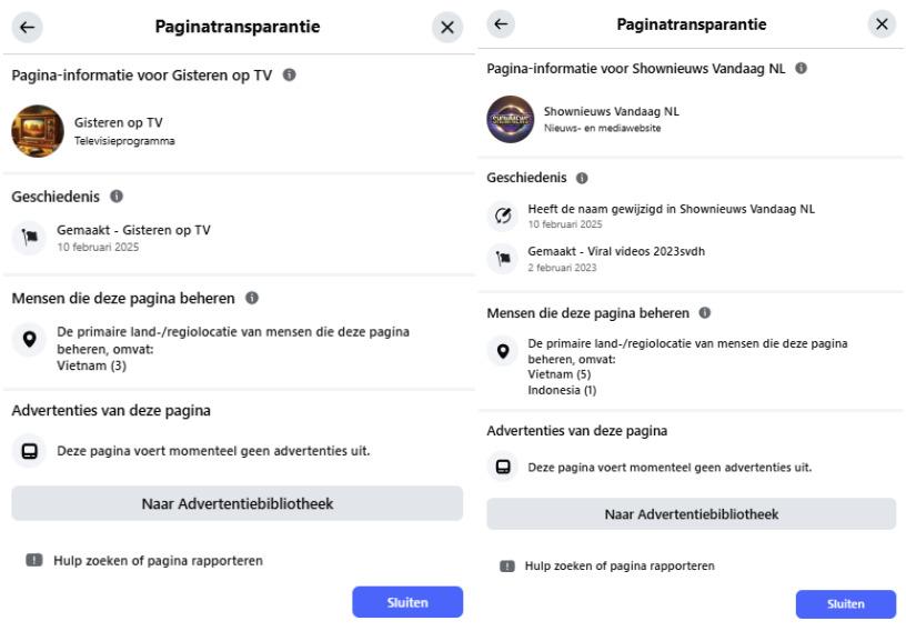 Verschillende van de Facebook-pagina's lijken beheerd vanuit het buitenland, onder andere in landen zoals Vietnam, Indonesië en Turkije.