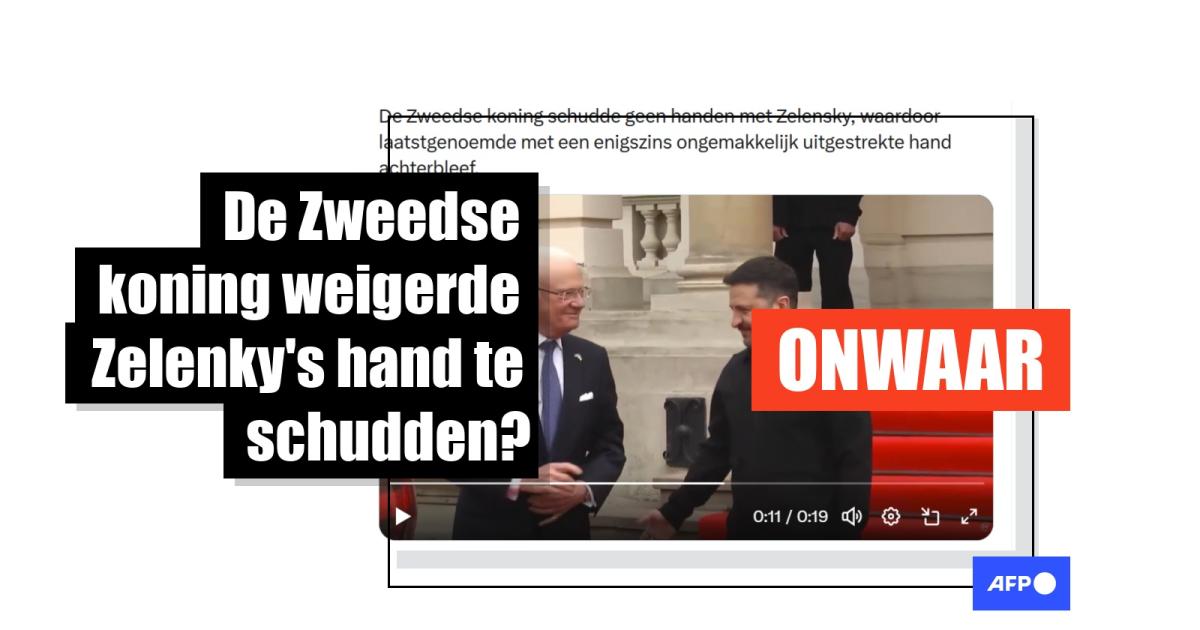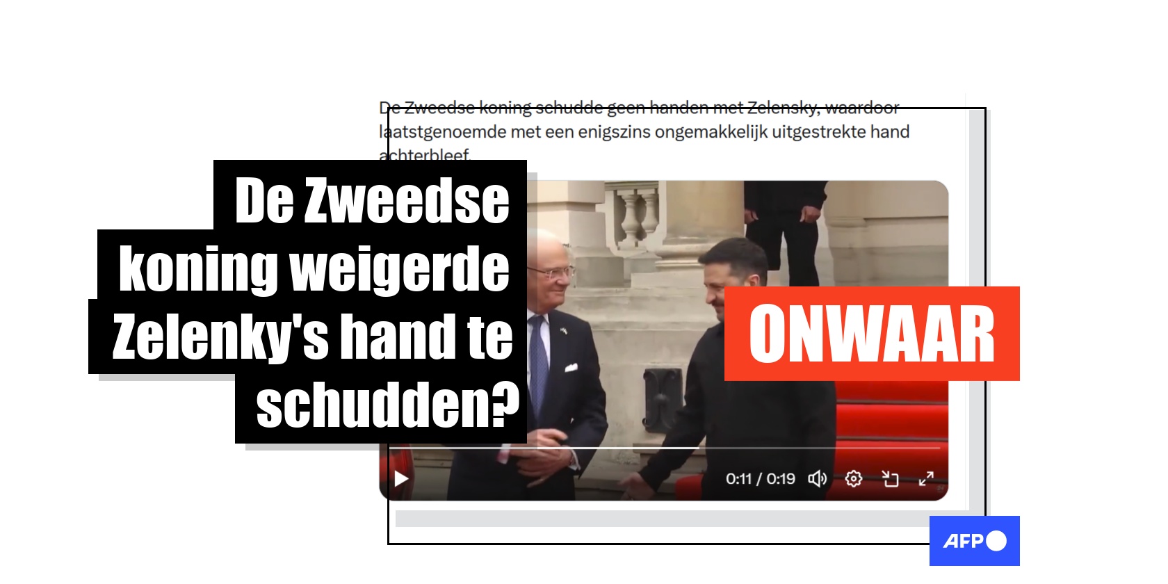 AFP publiceerde verschillende foto's en video's van het bezoek waaruit blijkt dat de Zweedse koning Zelensky wel de hand schudde.