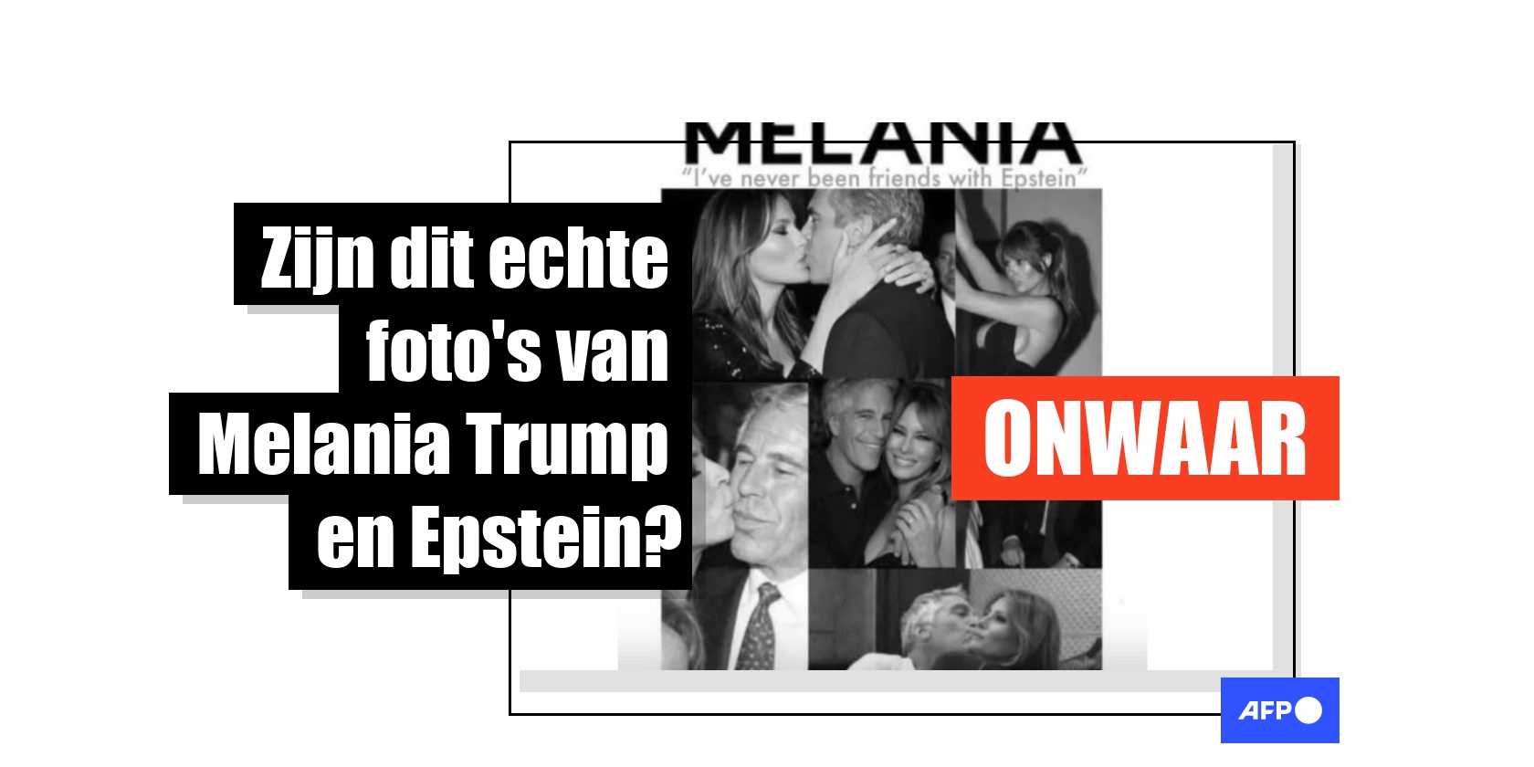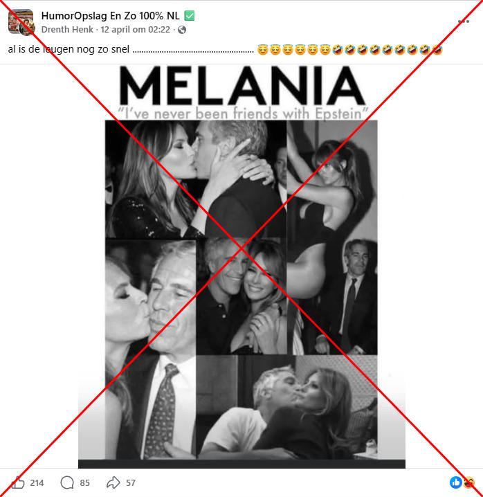 De Amerikaanse first lady Melania Trump gaf in april 2026 een verrassende verklaring waarin ze ontkende iets af te weten van het misbruik door Jeffrey Epstein of zelf ooit slachtoffer te zijn geweest van de veroordeelde zedendelinquent. Kort daarna verscheen er een collage van vijf zwart-witfoto's op sociale media, waarop de twee ogenschijnlijk in intieme situaties te zien waren. Hoewel er authentieke foto's van Epstein en Melania Trump bestaan, bleek uit een analyse van AFP dat deze vijf afbeeldingen nep zijn. Ze zijn vervalst, bewerkt of gegenereerd met behulp van kunstmatige intelligentie.