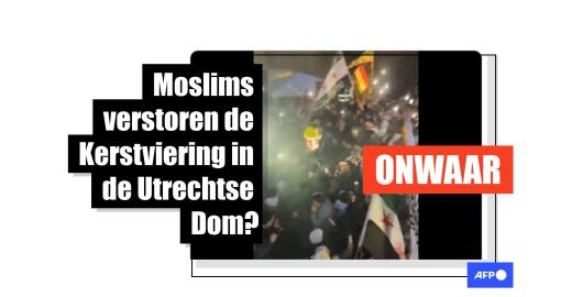 Afbeelding Migratie Gepubliceerd op 17/12/2025 Video toont Syriërs die de herdenking van de val van Assad vieren in Utrecht, niet een 'kerstviering' die wordt verstoord